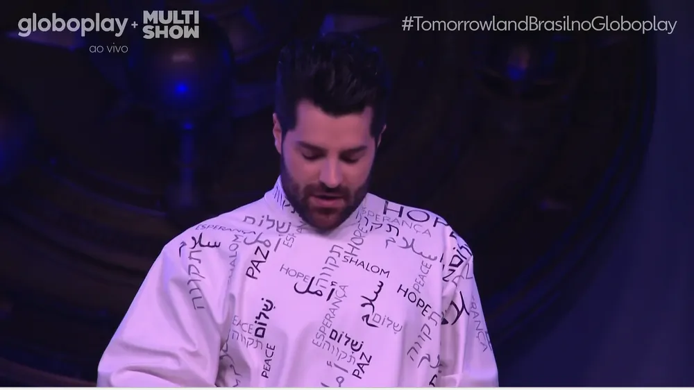 Alok subiu ao palco do Tomorrowland usando uma camiseta com as palavras “paz” e “esperança” escritas em diversos idiomas, transmitindo uma mensagem de união e otimismo em tempos difíceis. Durante sua apresentação, ele emocionou o público presente ao dizer: “A gente quer é que o mundo dê uma chance pra paz.”