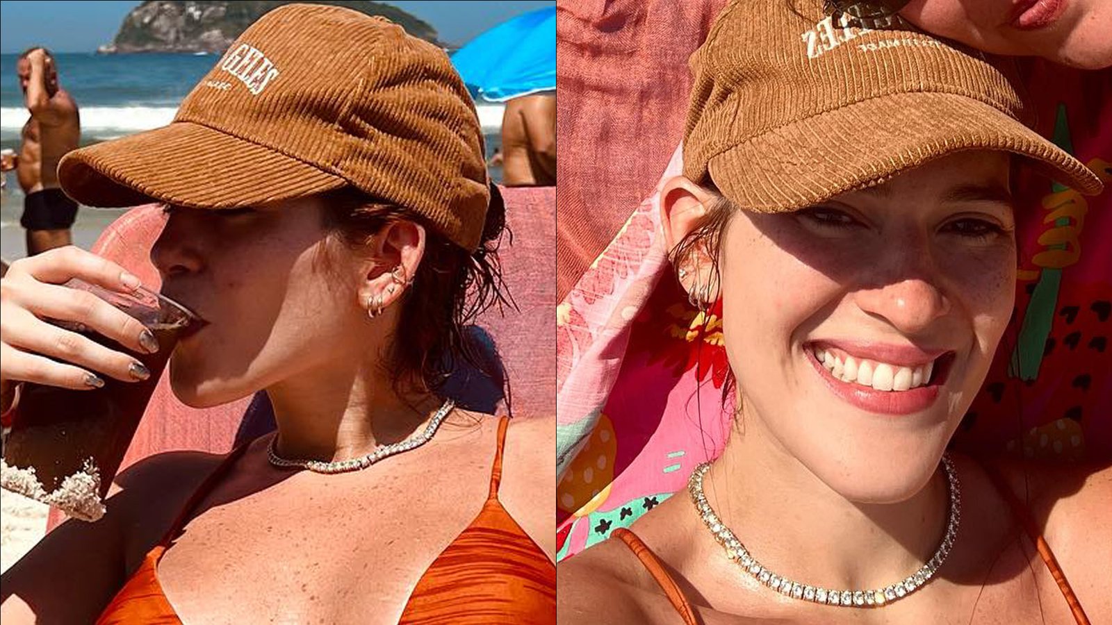 Na ocasião, a ruiva abaixou a parte inferior da roupa de banho no limite e deixou o cantinho da virilha à mostra para mostrar a marquinha de bronze que conseguiu durante o dia ensolarado. Acompanhada das amigas, ela curtiu a folga mostrou tudo aos fãs com um álbum de fotos.