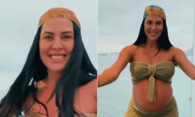 Grávida pela primeira vez, Graciele Lacerda coloca o barrigão para dançar em um vídeo de coreografia no navio do marido, Zezé Di Camargo Grávida pela primeira...