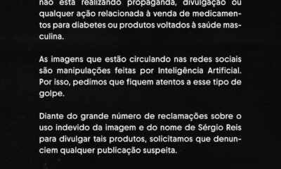 A Explosion Music, escritório que representa o cantor Sérgio Reis, vem a público esclarecer que o artista não está realizando propaganda, divulgação ou qualquer ação relacionada...