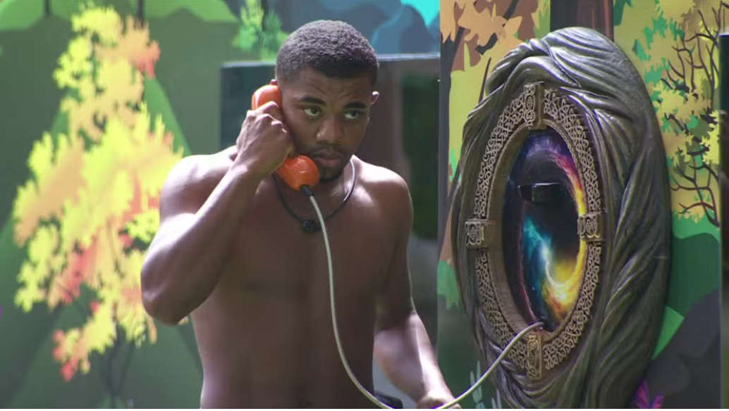 Após ouvir o toque de “ocupado”, o baiano ainda fica com o telefone na orelha, em silêncio. Outros brothers se juntam a ele no jardim e perguntam se o brother pode falar a mensagem que ouviu. “Se não for falar, eu vou voltar para a cozinha”, diz Leidy Elin. “Pode voltar para a cozinha”, o motorista de aplicativo responde.