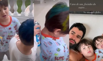 A modelo Andressa Suita divertiu e surpreendeu ao mostrar os seus dois filhos com os cabelos tingidos de várias cores. Ela e o cantor Gusttavo Lima...