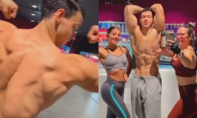 Aos 19 anos, Victor Alexandre, filho de Carla Perez e Xanddy, faz exercício com a namorada e exibe abdômen trincado e braço musculoso Com apenas 19...