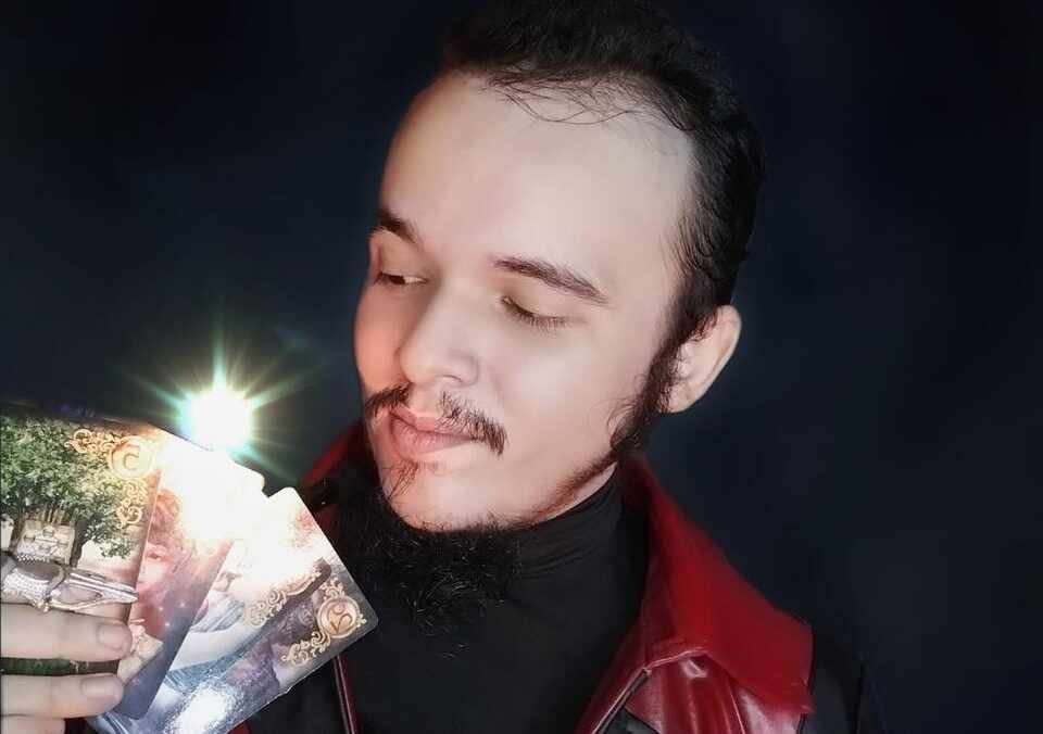 Em 2017, ele estava numa casa de artigos religiosos e encontrou baralhos e ficou muito atraído, ele já tinha atração por conta desse mundo ficcional e do que apontavam do que ele seria, as pessoas já percebiam que ele era exotérico, antes mesmo dele próprio entender o que era tudo aquilo, comprou o baralho, foi estudar e começou a ver coisas triviais de sua vida e da vida das pessoas de sua casa, dos seus familiares, estudando muito.
