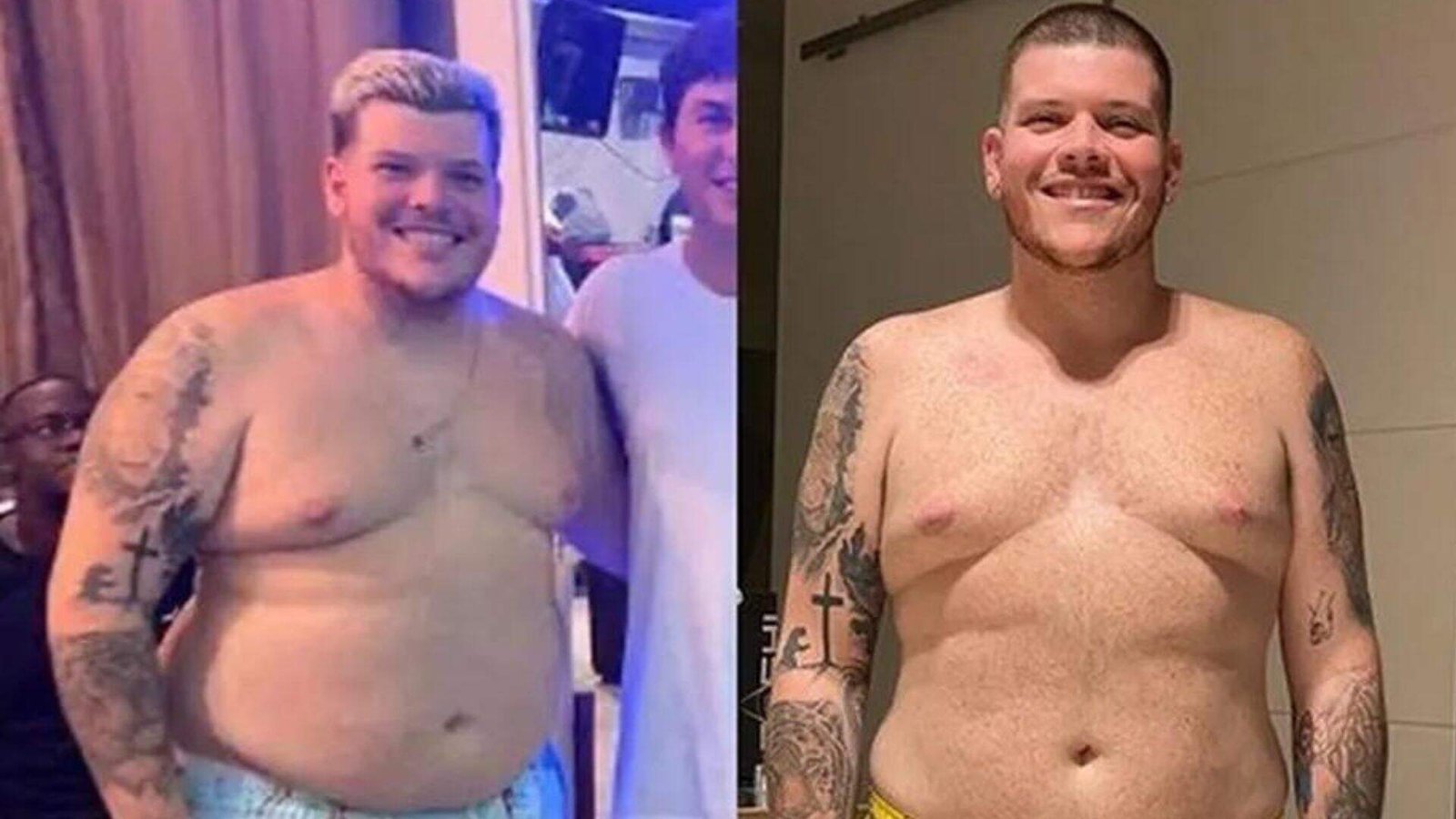 Ferrugem mostra antes e depois do corpo com 33 kg a menos (Foto: Reprodução)