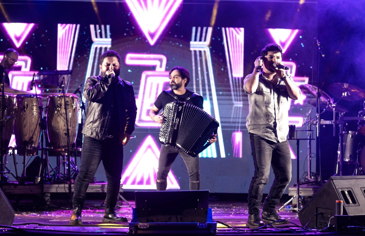 Júnior & Cézar são acompanhados no palco pela banda composta por Eduardo Lopes (Gaita), Léo França (Bateria), Cauê Magrine (Violão), Marcos Mazieri (Baixista) e Marcio Luiz Tolio (Percussão).