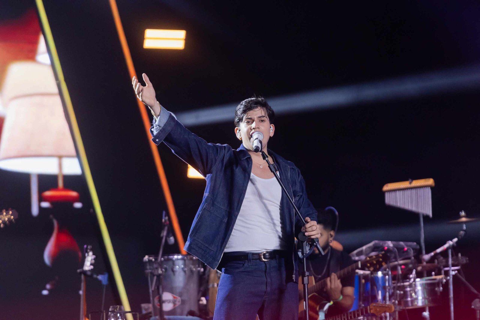 Léo Foguete subiu ao palco da Pecuária como quem já nasceu para estar ali. Carismático e cheio de energia, ele transformou a noite em um verdadeiro espetáculo.