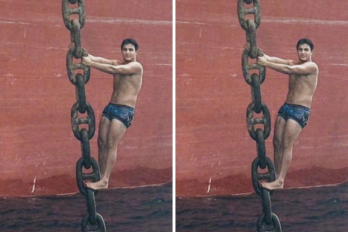 O filho de Ivete Sangalo e Marcelo Cady foi clicado pendurado na corrente da âncora de um navio, em alto-mar.