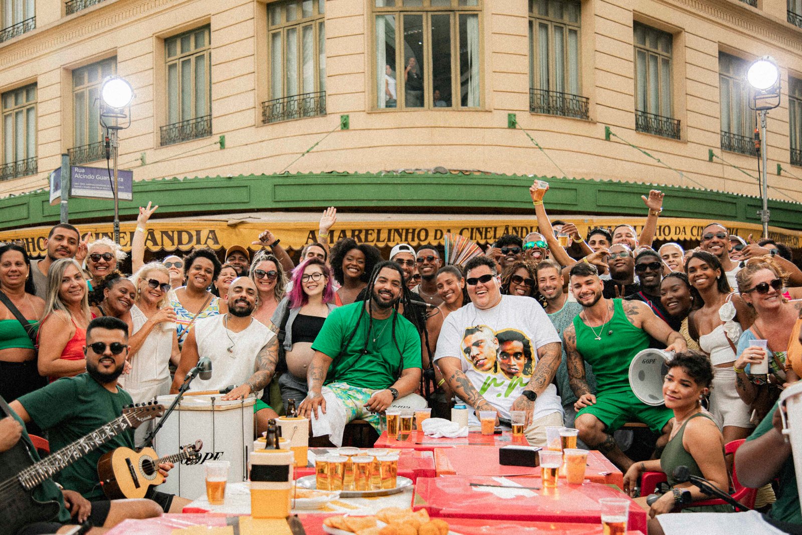 A apresentação, filmada em frente ao Amarelinho, um tradicional bar carioca, reuniu uma multidão e transformou o centro da cidade em um verdadeiro palco a céu aberto, resultando em um registro autêntico e repleto de energia.