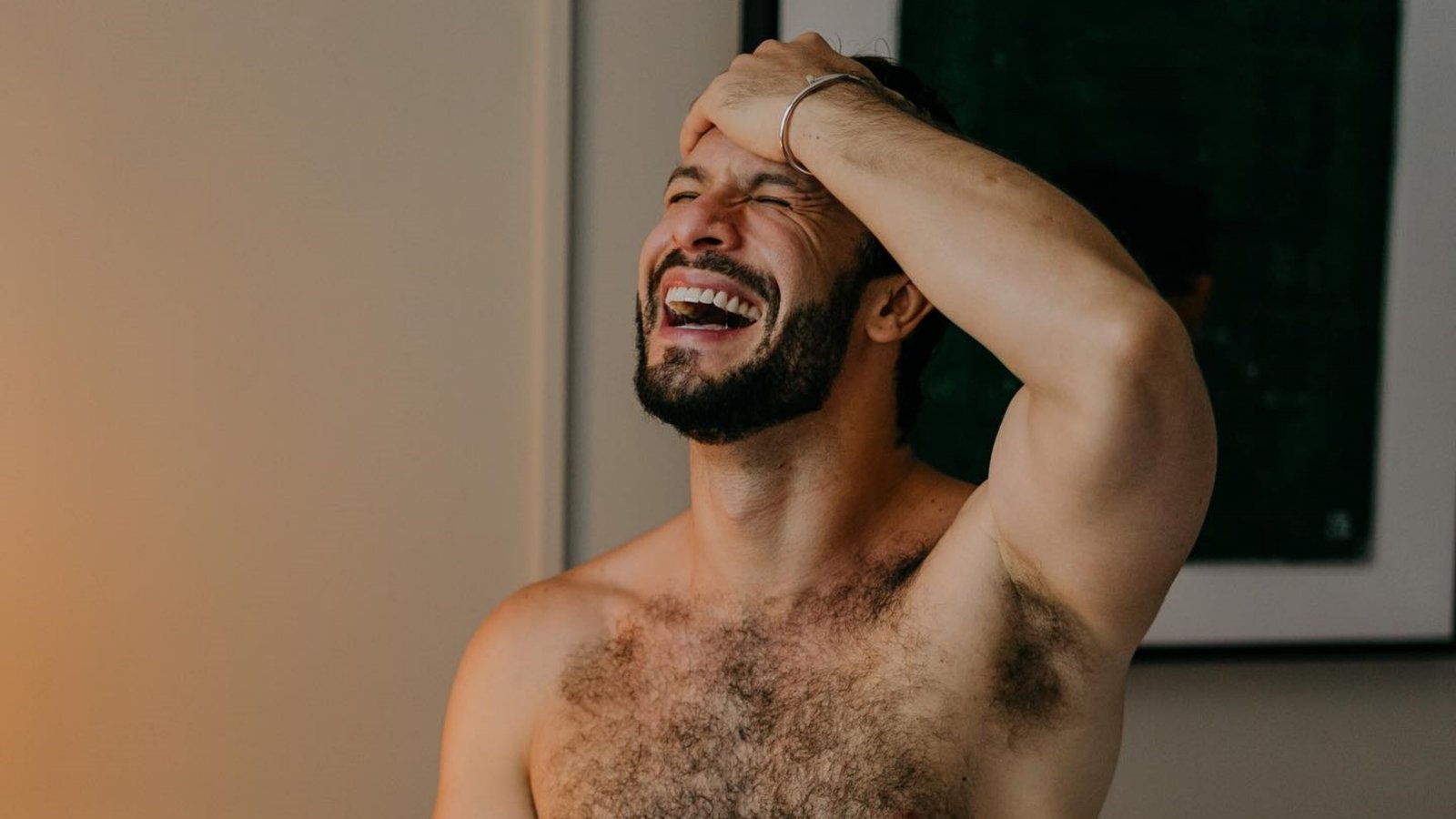 Em seu perfil oficial no Instagram, o artista, que está no ar na novela ‘Terra e Paixão’, da TV Globo, interpretando o personagem Luigi, surgiu completamente sem roupa, e cobrindo suas partes íntimas com uma toalha.