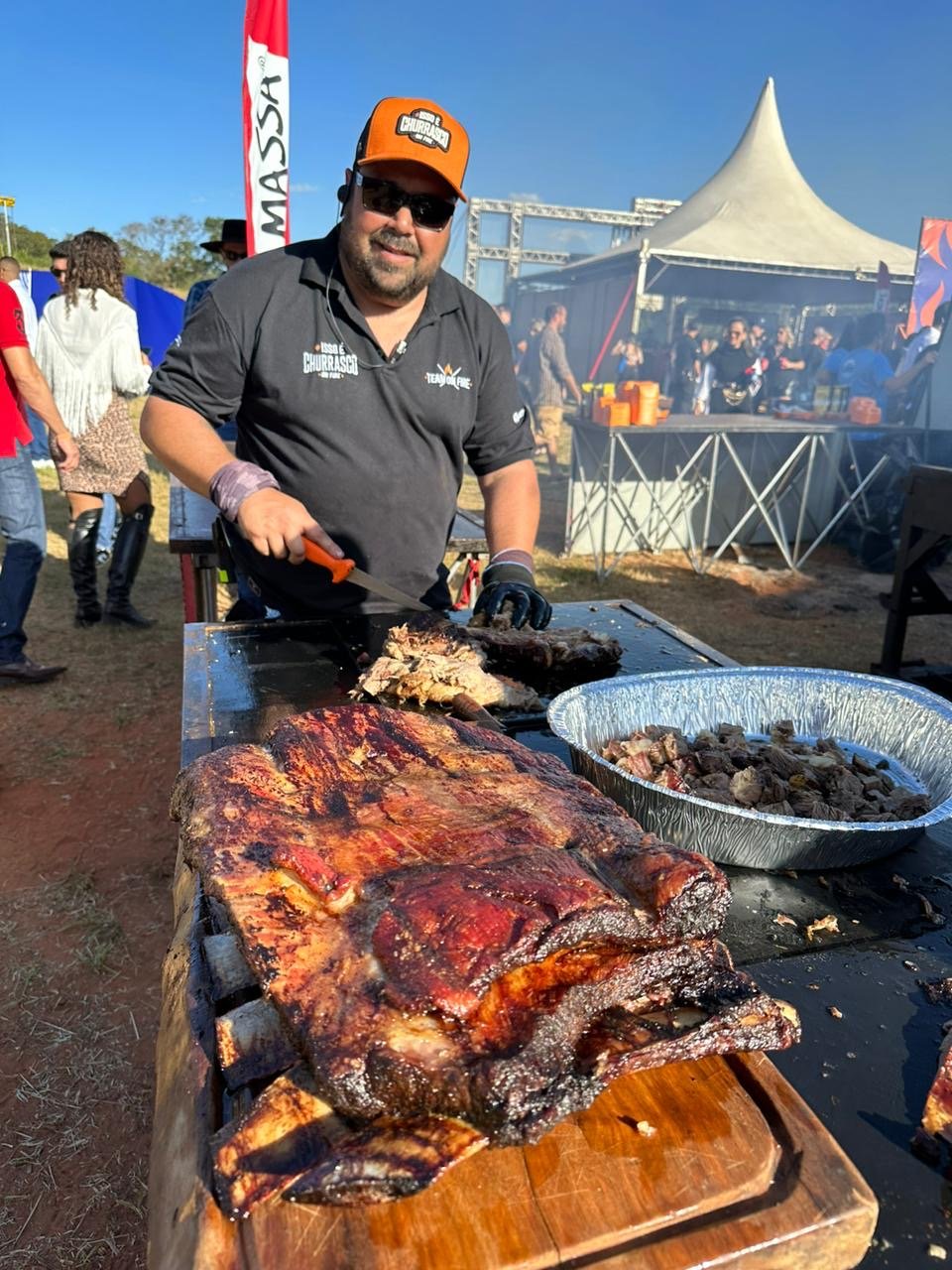 “Serviremos além de cortes tradicionais como a fraldinha, teremos a queridinha de todo brasileiro, a costela no fogo de chão, preparada com carinho por horas e horas até ficar suculenta. E para finalizar, teremos um delicioso hambúrguer. Como acompanhamento teremos uma caponata de legumes, nosso tradicional choripan servido com chimichurri e arroz carreteiro”, conta Bruno Guilherme. Só na parte da preparação e serviço das proteínas cerca de 60 funcionários estarão trabalhando no evento.