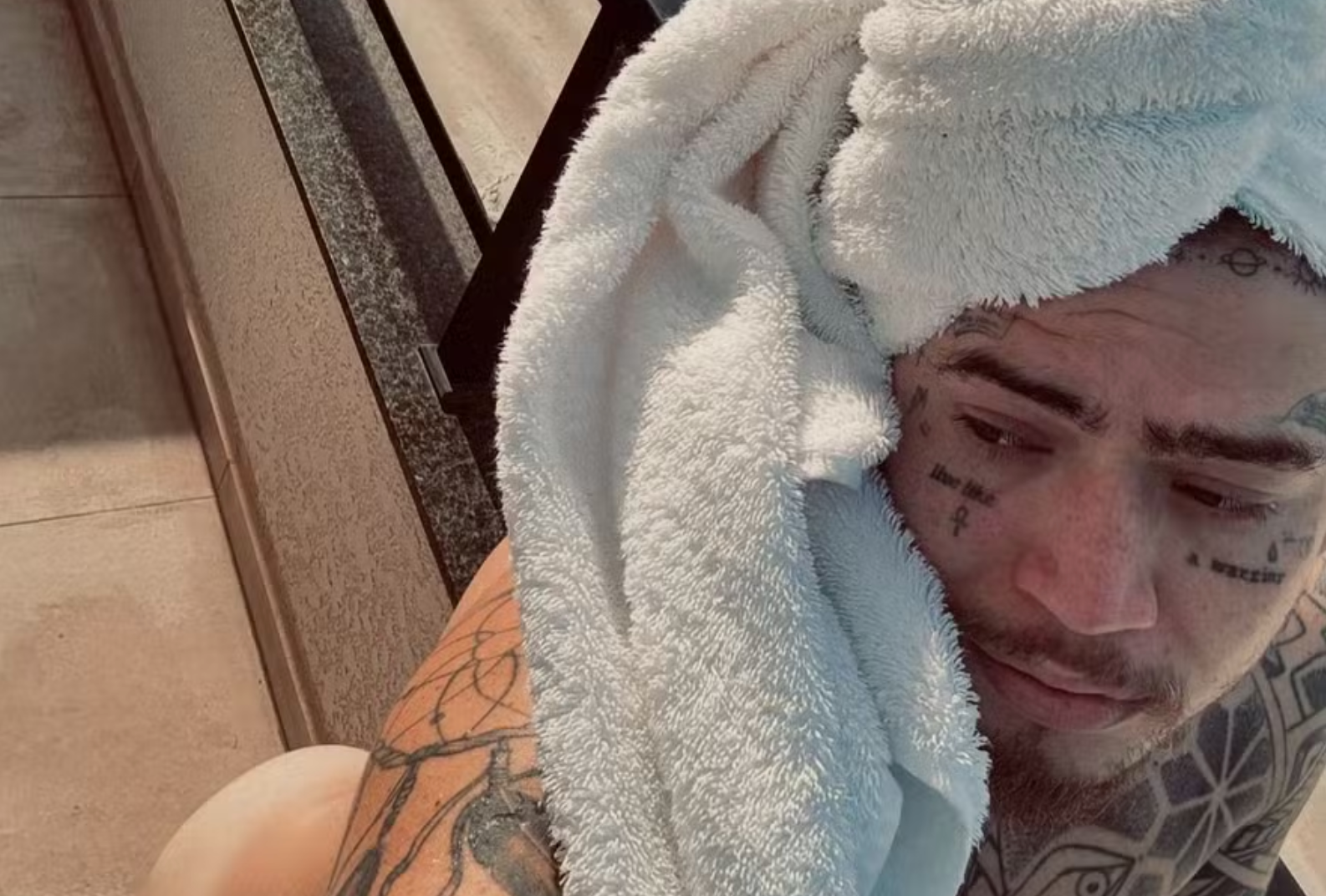 Na imagem, o humorista aparece com uma toalha na cabeça, deixando seu bumbum em evidência.